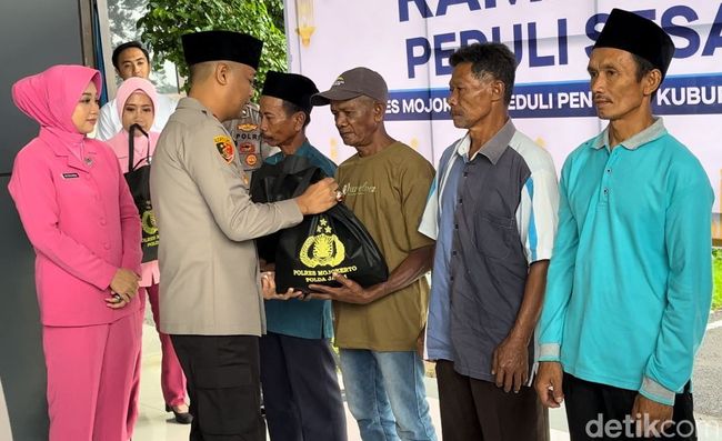 Sasarannya tak lain 75 penggali makam, muazin jenazah, serta pemandi jenazah dari 14 kecamatan di wilayah hukum Polres Mojokerto. Setiap penerima mendapatkan 1 paket sembako dan uang tunai Rp 200.000.