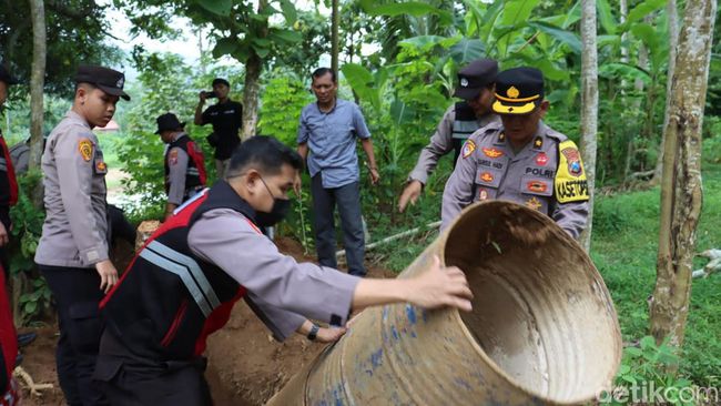 "Berikutnya tim menemukan tong bekas minyak yang di las menjadi satu di kebun dan diduga akan dipergunakan untuk membunyikan mercon pada malam takbiran," tambah kapolres.