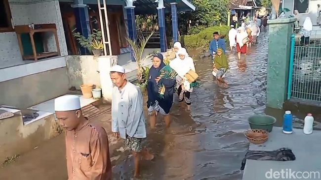 "Sholat id tadi ya nerjang banjir. Mau gimana lagi masih ada genangan sekitar 15-an centimeter," ujar M Iqbal salah satu warga, Rabu (9/4/2024).