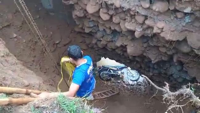 "Titik longsor itu masih tertutup oleh banjir, sehingga mereka lewat begitu saja, akibatnya kedua terperosok ke dalam lubang longsor. Sepeda motornya terjun ke dasar longsor," ujarnya.