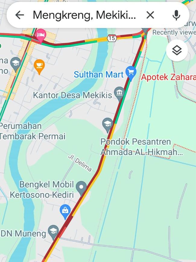H+4 Lebaran 2024, Simpang Mengkreng Kediri masih terlihat ada antrean panjang kendaraan. Antrean panjang kendaraan terlihat di aplikasi google maps warna merah hingga 4 Km.