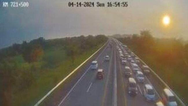 Pantauan detikJatim di aplikasi Travoy Jasa Marga pukul 16.54 WIB, CCTV menangkap kepadatan di jalur yang menuju ke Surabaya. Ekor kepadatan kendaraan sudah mencapai KM 721.500 atau hampir 2 kilometer.