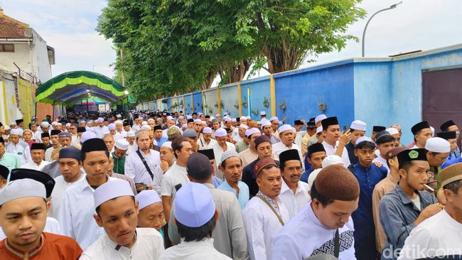 Haul ulama dan pejuang yang punya julukan Singa Putih ini dipusatkan di makamnya di Kelurahan Pekuncen, Kota Pasuruan, Rabu (17/4/2024). Ribuan orang memadati titik utama haul sejak pukul 05.00 WIB.