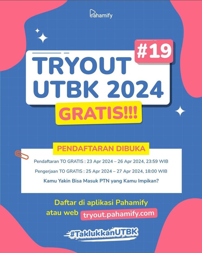 - Ikuti akun Instagram @tryoutUTBK.idn, @gummu.id, dan @tryoutbumn.id.