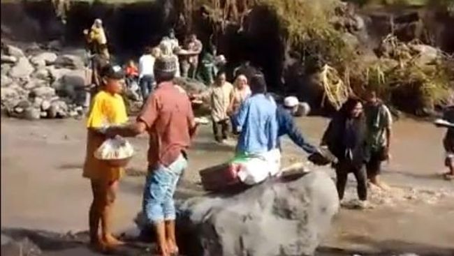 Rombongan pengantin terpaksa menyeberangi derasnya aliran lahar dingin Gunung Semeru di Sungai Regoyo, Desa Gondrouso, Kecamatan Pasirian, Lumajang. Pasalnya, jembatan yang biasa dipakai menyeberangi sungai itu terputus imbas longsor beberapa waktu lalu.