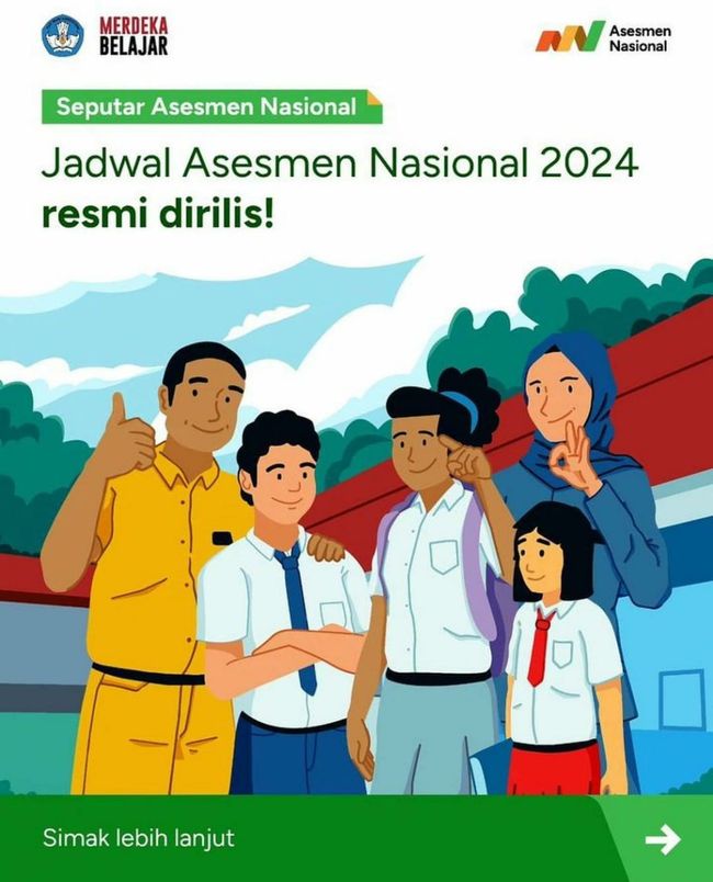 Kementerian Pendidikan, Kebudayaan, Riset, dan Teknologi telah merilis jadwal asesmen nasional 2024. Pemberitahuan tersebut dibagikan melalui akun instagramnya.