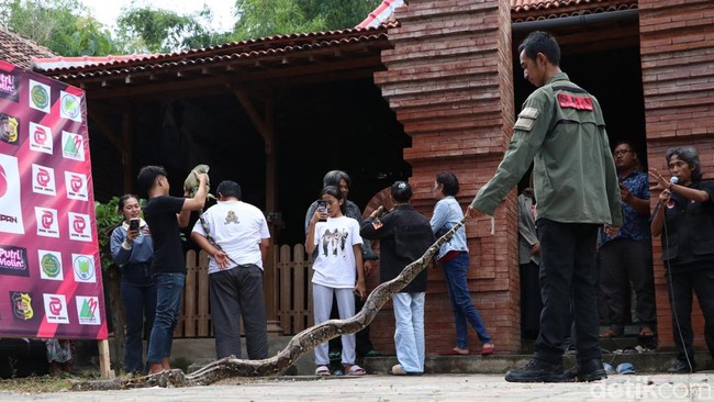 "Tadi yang jadi contoh ular sanca sepanjang dua meter. Kita langsung praktik cara menjinakkan dan menangkap ular," tutur salah satu warga, Ersa Syifaul kepada wartawan, Minggu (28/4/2024).