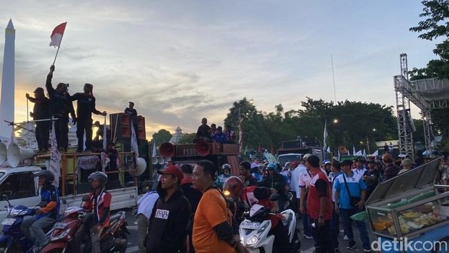 Pantauan detikJatim, Pj Gubernur Jatim Adhy Karyono bersama Kapolda Jatim Irjen Imam Sugianto, Pangdam V/Brawijaya Mayjen TNI Rafael Granada Baay, serta beberapa jajaran lainnya telah menemui massa aksi Hari Buruh ini.
