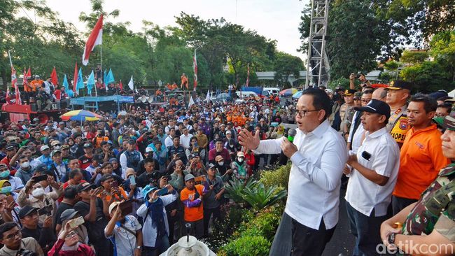 Poin pertama, Pemprov Jatim akan menyampaikan usulan Aliansi Gabungan Serikat Pekerja Jawa Timur yang menolak Omnibus Law UU No 6 Tahun 2023 tentang Cipta Kerja, revisi Perpres Nomor 82 Tahun 2018. Kemudian, menolak kenaikan cukai rokok.