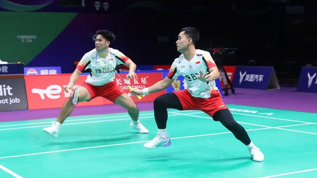 Leo Rolly Carnando/Daniel Marthin menghadapi Dhruv Kapila/Sai Pratheek di Hi-Tech Zone Sports Centre Gymnasium, Chengdu, Rabu (1/5/2024) malam WIB. Leo/Daniel menang 22-20 dan 21-11, memastikan Indonesia menang 3-1 atas India dan jadi juara grup usai memenangi seluruh laga fase ini.