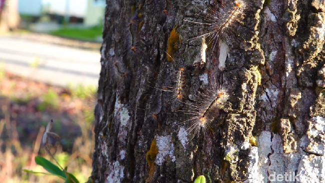 "Serangan ulat bulu sudah satu minggu. Ulat berasal dari pohon mahoni. Akibat ulat bulu ini warga dan anak anak mengalami gatal-gatal. Terutama yang punya anak-anak ya, anak saya lehernya sudah merah-merah kena ulat ini," ujar warga bernama Nuriyanti kepada detikJatim, Jumat (3/5/2024).
