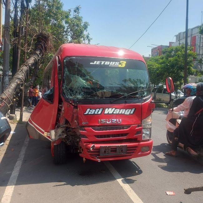 "Kondisi (pengemudi) sadar, hanya nyeri. Jumlah keseluruhan dinyatakan aman, ada 21 orang penumpang. Tidak ada korban luka dan korban jiwa, seluruh penumpang selamat. begitu juga pengendara di sekitarnya tidak ada (yang terdampak laka lantas)," paparnya.