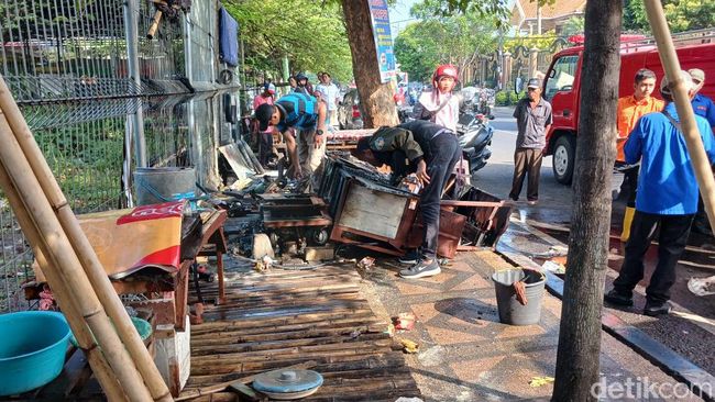 Kebakaran warung milik Tatik Suharini (58) itu bermula saat dia sibuk menyiapkan pesanan kopi para pegawai perkantoran yang ada di sekitar lokasi, Senin (6/5/2026) pukul 08.00 WIB. Tiba-tiba, api muncul dari dalam gerobak yang berisi Bahan Bakar Mesin (BBM). Api cepat berkobar.
