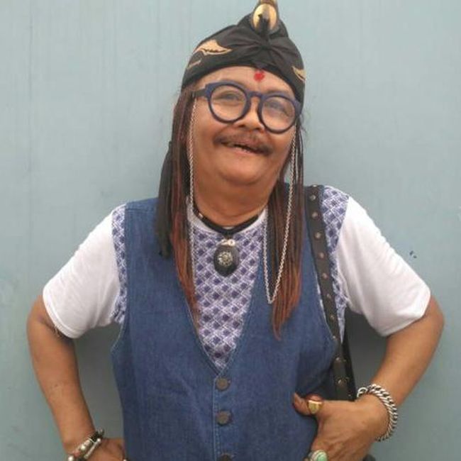Rambut gondrong, kacamata berantai, dan cincin batu akik di jari tangannya tak pernah ketinggalan.