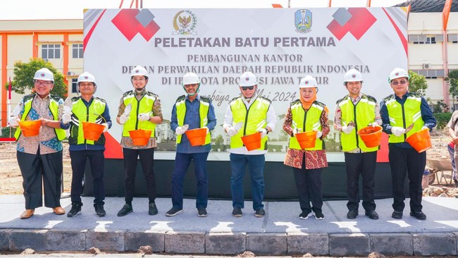 "Pembangunan Kantor Daerah DPD RI melalui mekanisme hibah dan bantuan dana dari Pemerintah Provinsi Jatim adalah terobosan sebagai jalan keluar atas adanya moratorium oleh Menteri Keuangan. Ini adalah yang pertama dalam sejarah DPD RI. Dan sejarah itu kita ukir di Jawa Timur. Tepuk tangan untuk Jawa Timur," ujar LaNyalla, Senin (13/5/2024).