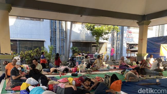 Mereka bertahan dengan kondisi seadanya. Tidur beralaskan tikar, makan dari dapur umum swadaya, akses mandi, cuci, kakus (MCK) yang terbatas, serta belum bisa beraktivitas secara normal.