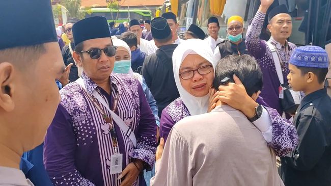 Mereka tampak saling berpelukan dengan anggota keluarga yang akan berangkat haji. Beberapa anak menangis histeris. Mereka memeluk dan mencium kedua orang tuanya yang akan berangkat haji ke Mekkah dan Madinah.