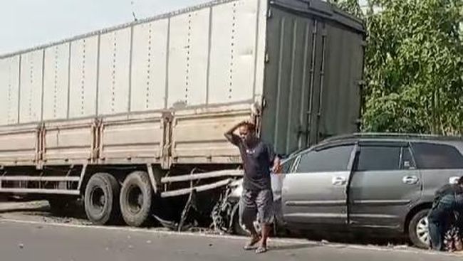 "Kabar yang beredar sopir mobil Innova ngantuk terus nabrak belakang truk parkir dan motor," ucap Yono warga setempat, Kamis (23/5/2024).