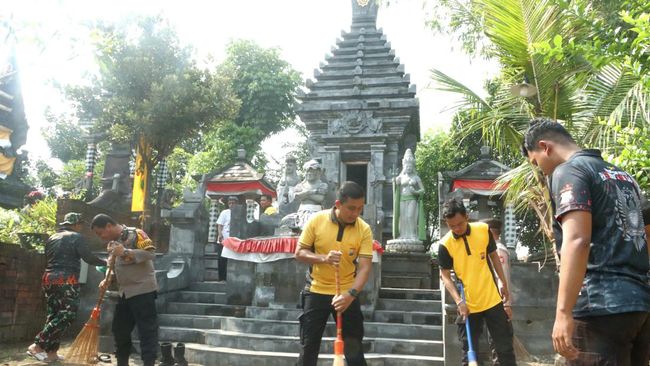 Selain itu, bakti religi juga menyasar Pura Sasana Bina Yoga di Desa Sumbertanggul, Mojosari, Mojokerto. Ihram juga memimpin anak buahnya membersihkan tempat ibadah umat Hindu ini.