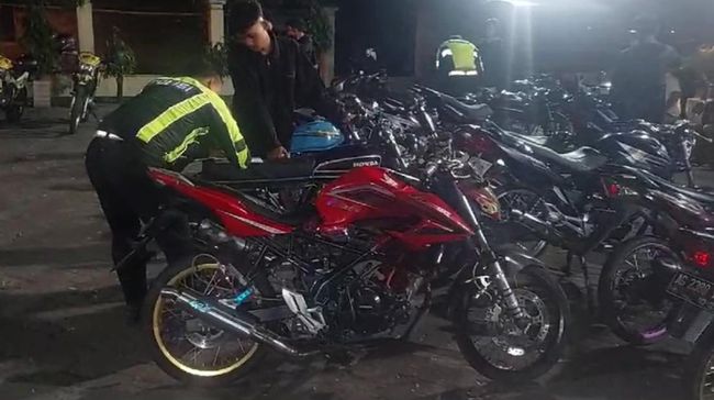 Belasan kendaraan sepeda motor terjaring razia balap liar di kawasan Simpang Lima Gumul (SLG) Kecamatan Ngasem, Kabupaten Kediri, Minggu (26/5/2024).