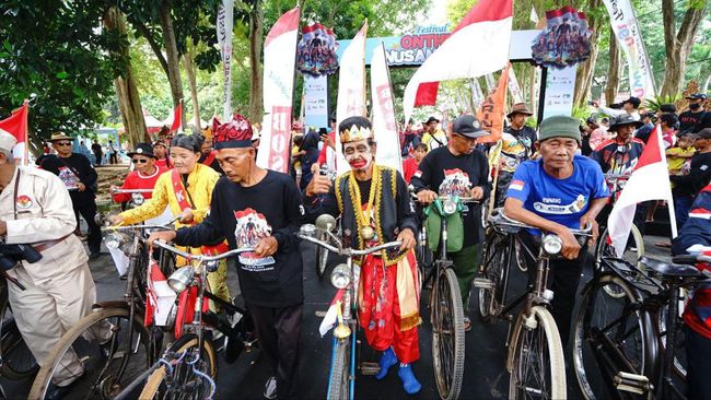 Ribuan pesepeda berpartisipasi dalam Festival Onthel Nusantara yang digelar di Banyuwangi. Mereka mengayuh sepeda tua mereka sejauh 12 kilometer mengelilingi rute perkotaan dan sejumlah destinasi ikonik di Banyuwangi, Minggu (26/5/2024).