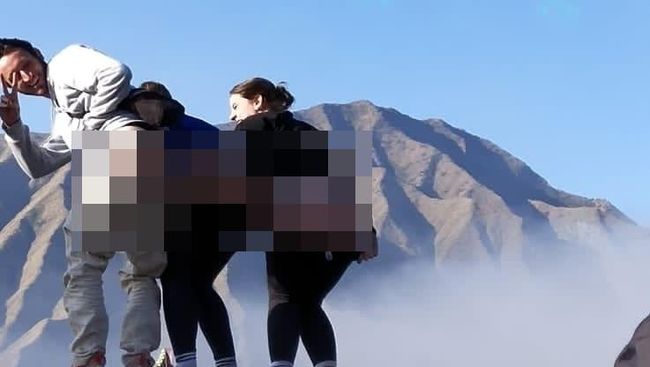3 Wisatawan asing melakukan aksi tak terpuji dengan foto pamer pantat di atas jip saat berkunjung ke Gunung Bromo. Mereka mengabadikan momen wisata itu dengan background pegunungan Bromo yang cantik.