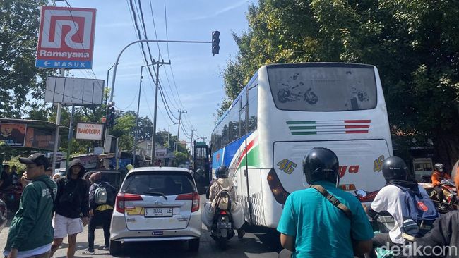 Pantauan detikJatim, di Jalan Letjend Sutoyo atau di area sekitar pintu masuk Terminal Purabaya, banyak bus yang berhenti sekitar 2 sampai 3 menit untuk menurunkan penumpang.