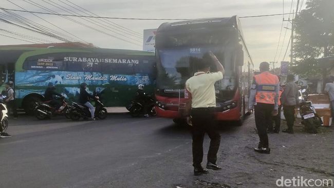 Petugas gabungan dari Terminal Purabaya, Polsek Waru, Satpol PP, dan Dishub Surabaya menindak bus-bus yang ngetem di luar terminal. Bus-bus ngetem yang kerap menurunkan dan menaikkan penumpang sembarangan itu kerap membuat arus lalu lintas macet.
