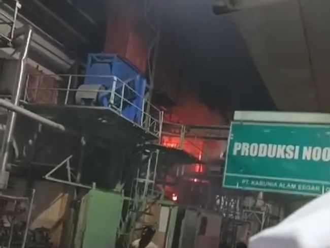 Belum diketahui pasti penyebab kebakaran, namun titik api berasal dari cerobong asap pembuatan bumbu Mie Sedaap.