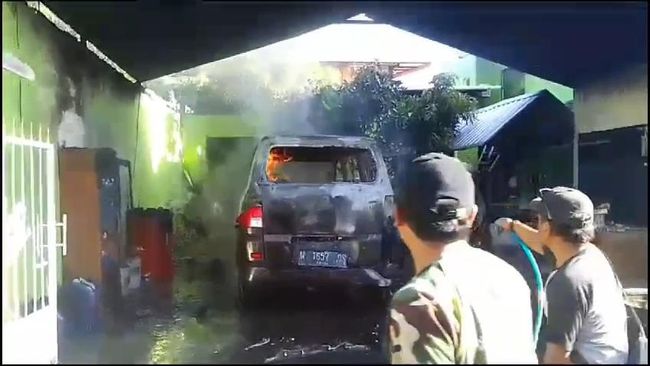 Dengan cepat percikan api merembet dan membakar bagian dalam mobil dengan cepat. Kebakaran ini sempat membuat Supangkat dan keluarganya panik.