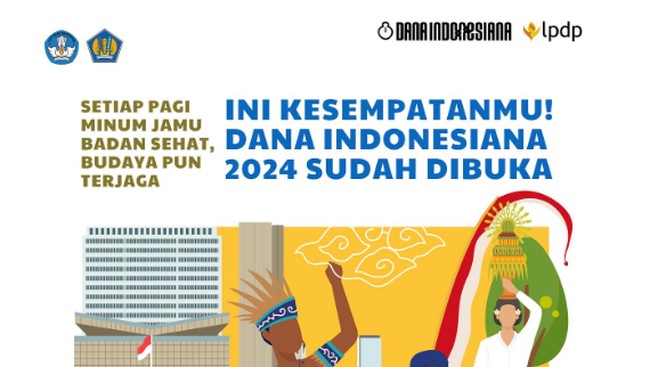 Pendaftaran Dana Indonesiana 2024 dari Kementerian Pendidikan, Kebudayaan, Riset, dan Teknologi (Kemendikbudristek) telah dibuka. Pendaftaran dilaksanakan sepanjang bulan Juni 2024. Bantuan pemerintah ini ditujukan untuk para pelaku budaya.