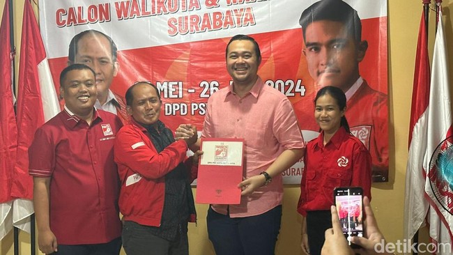 Kader Golkar yang juga Ketua DPD Pro Jokowi (Projo) Jawa Timur, Bayu Airlangga resmi mendaftar Bakal Calon Wali Kota Surabaya melalui PSI Surabaya.