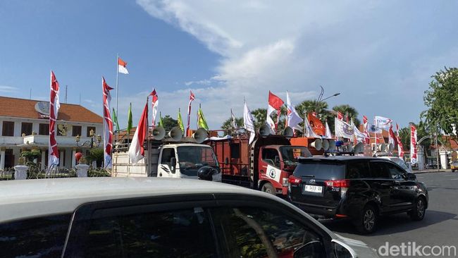 Pantauan detikJatim di lokasi pukul 14.50 WIB, massa buruh tampak belum ada yang datang. Namun, lima truk yang menjadi kendaraan komando sudah terparkir di depan Grahadi.