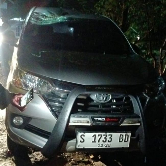 Mobil Toyota Avanza S 1733 BD yang diparkir di depan rumah pemiliknya ini kaca depan, belakang samping kiri pecah dan bodi atas juga rusak.
