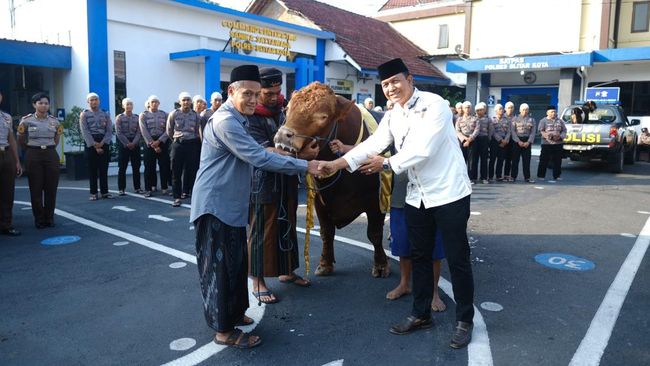 "Di momen Idul Adha ini, kami Polres Blitar Kota dan jajaran turut berbagi sedikit keberkahan dengan sesama. Juga sebagai bentuk menjalin silaturahmi," kata Gede Suartika, Senin (17/6/2024).