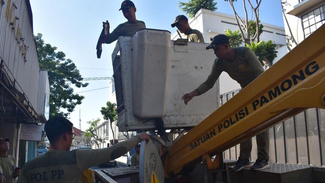 "Kami lakukan pembongkaran papan reklame, sesuai dengan permintaan bantuan penertiban yang telah dilayangkan oleh Bapenda Kota Surabaya kepada Satpol PP," kata Ketua Tim Kerja Penindakan Satpol PP Surabaya Agnis Juistityas, Minggu (23/6/2024).