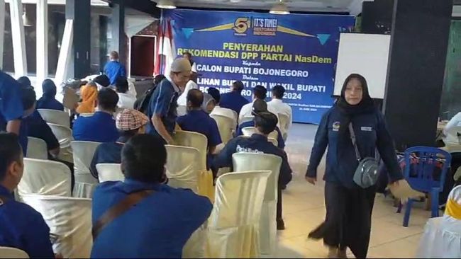 NasDem Bojonegoro menyerahkan surat rekomendasi DPP kepada Anna Muawanah sebagai calon bupati Bojonegoro 2024. Aksi walk out sejumlah kader mewarnai acara ini.