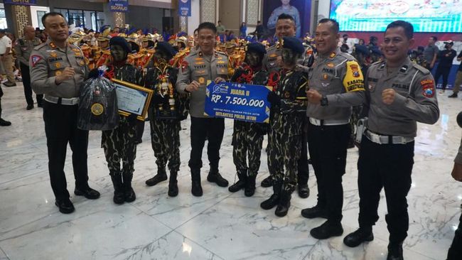 Grand final lomba pocil Tingkat Jatim digelar di Gedung Mahameru Polda Jatim, Rabu (26/6/2024). Lomba diikuti tim pocil dari 10 polres terbaik masing-masing rayon.