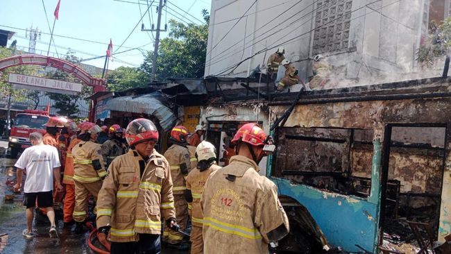 "Yang terbakar habis tiga stan, unit (pemadam) yang diberangkatkan ada sepuluh. Api pokok padam 11.20 WIB, pembasahan selesai dan dinyatakan kondusif 11.43 WIB," ujarnya.