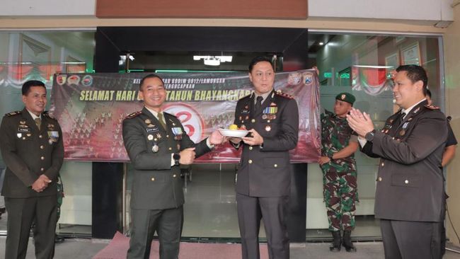 Dandim 0812/Lamongan Letkol Arm Ketut Wira Purbawan memberikan kejutan saat peringatan HUT ke-78 Bhayangkara. Ia datang dengan rombongannya serta diiring oleh Korsik lengkap dengan kue tart dan tumpeng.