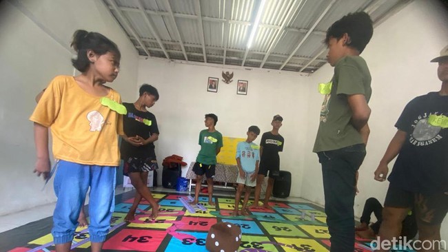 Selain ular tangga, anak-anak juga diajak bermain cublak-cublak suweng. Ada beberapa permainan tradisional yang bisa dipilih anak-anak.