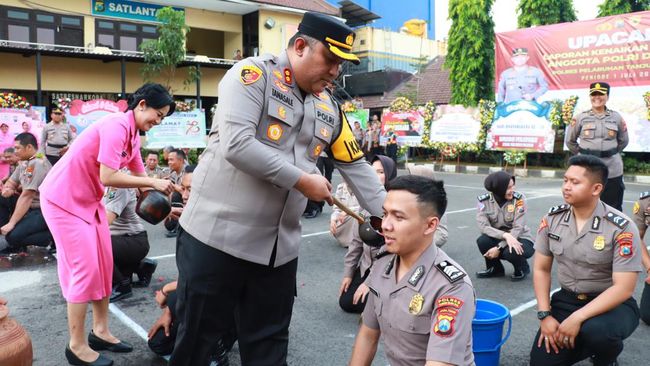 Ada sebanyak 27 PNS Polri yang diganjar kenaikan pangkat. Seluruhnya menjalani mandi kembang sebagai pertanda kebahagiaan dan rasa syukur atas kenaikan pangkat yang didapatkan.