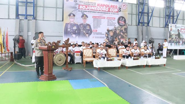 Kapolres Bojonegoro menyampaikan apresiasi dan terima kasih kepada panitia dan para atlet yang mengikuti kejuaraan pencak silat Kapolres Bojonegoro Cup 3 Tahun 2024 yang telah membuat kejuaraan ini berjalan sukses dan lancar.