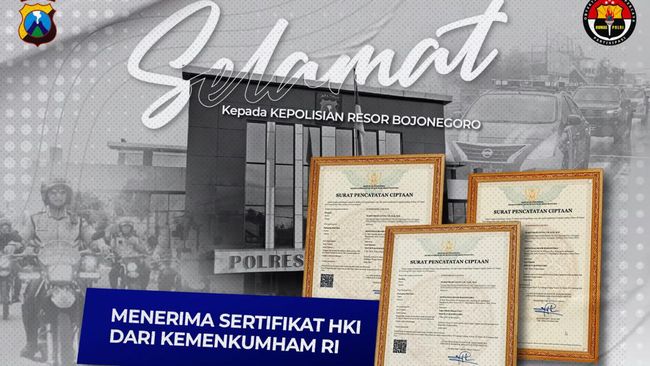 Polres Bojonegoro menerima tiga sertifikat hak kekayaan intelektual atau hak paten. Tiga hak paten ini untuk aplikasi Matur Pak Kapolres, program Birukan Bojonegoro dan Jingle lagu Birukan Bojonegoro.