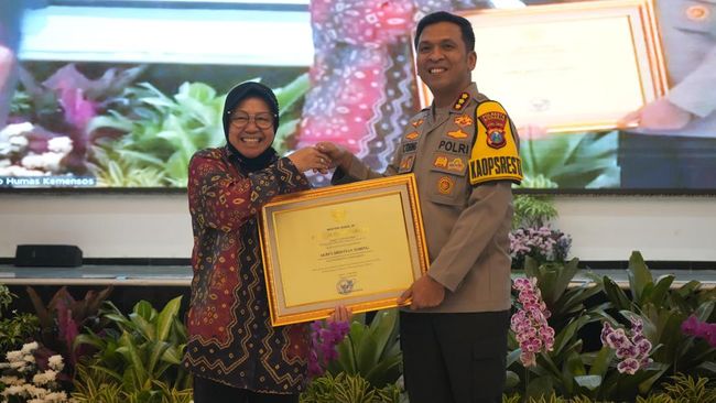 Apresiasi diberikan langsung dari Menteri Sosial Tri Rismaharini kepada Kapolresta Sidoarjo Kombes Christian Tobing. Penyerahan dilakukan di Jakarta, Senin (8/7/2024).