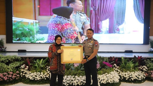 Penghargaan itu diserahkan langsung oleh Risma di Gedung Aneka Bhakti Kemensos pada Senin (8/7). KBO Satreskrim Iptu Yuda Julianto menerima piagam penghargaan itu mewakili Kapolres Mojokerto Kota AKBP Daniel S Marunduri dan Kasat Reskrim AKP Rudy Zaeni.