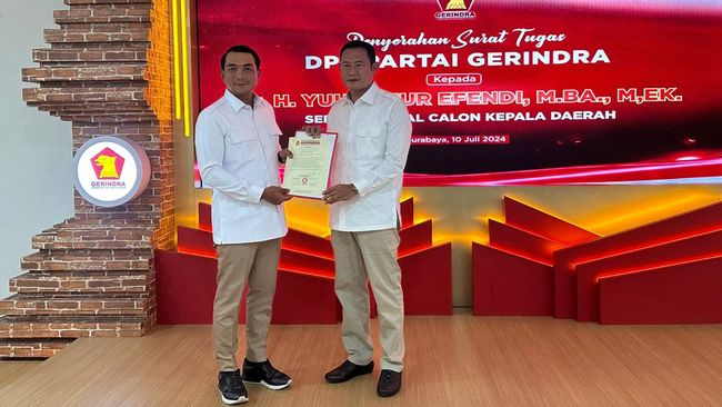 "Hari ini saya serahkan surat tugas kepada Pak Yes atau Pak Yuhronur maju di Pilbup Lamongan," kata Kharisma di Kantor DPD Gerindra Jatim, Rabu (10/7/2024).