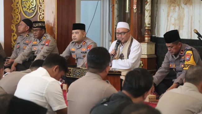 Binrohtal rutin digelar di Masjid Rofiqul Ummah Polres Pasuruan, Kamis (11/7/2024). Kegiatan ini diikuti Kapolres Pasuruan AKBP Teddy Chandra, PJU Polres Pasuruan, perwira, bintara, seluruh personel dan ASN Polres Pasuruan. Penceramah yang hadir Ketua MUI Kabupaten Pasuruan, KH Nurul Huda Muhammad.