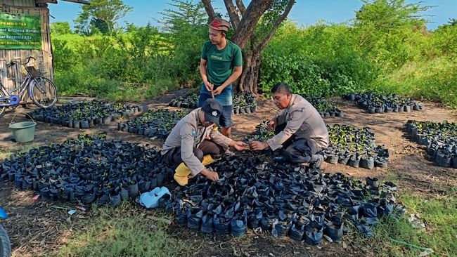 Kanit Binmas Polsek Dringu ini menjelaskan proses pembibitan dilakukan dengan mencari bibit mangrove dan menggunakan media tanam yang diambil dari lokasi penanaman.