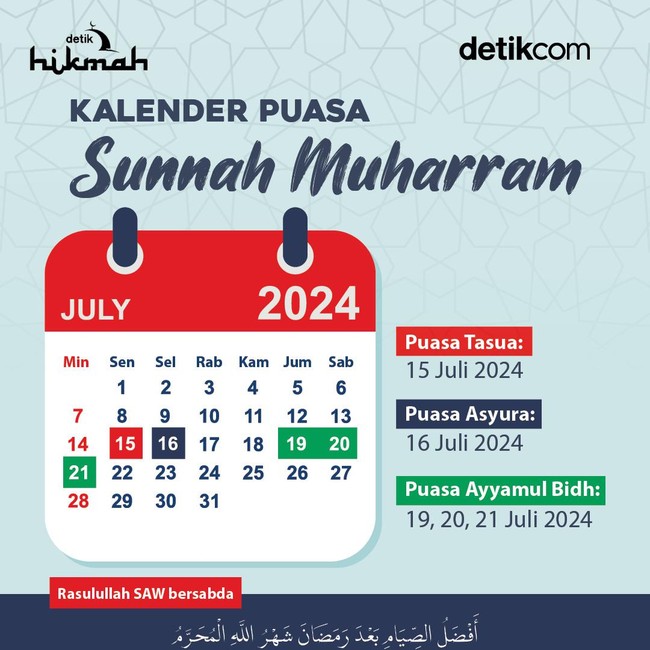 Dengan begitu, berdasarkan keputusan LF PBNU, 9 Muharram bertepatan dengan 16 Juli 2024. Sedangkan 10 Muharram jatuh pada 17 Juli 2024.